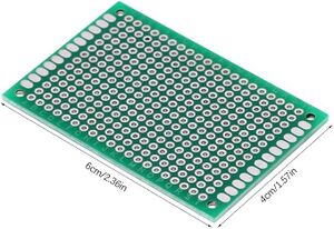 • Universelles und vielseitiges Design: Diese doppelseitige Prototyp-PCB-Leiterplatte misst 4 x 6 cm und verfügt über eine 2,54-mm-Loch-Tonhöhe mit einem Lochdurchmesser von ungefähr 1 mm, wodurch es ideal für eine Vielzahl von DIY-elektronischen Projekten ist.